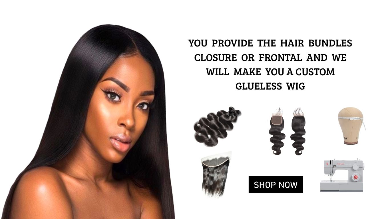 This is a type of machine-made wig construction that allows you to provide the hair bundles, closures, or frontals to create a customized glueless wig that fits you. The wig is personalized to be worn without the use of glue or adhesive, which makes it ready to wear and easy to take off. This is a great option for those who want to switch up their look without damaging their natural hair.